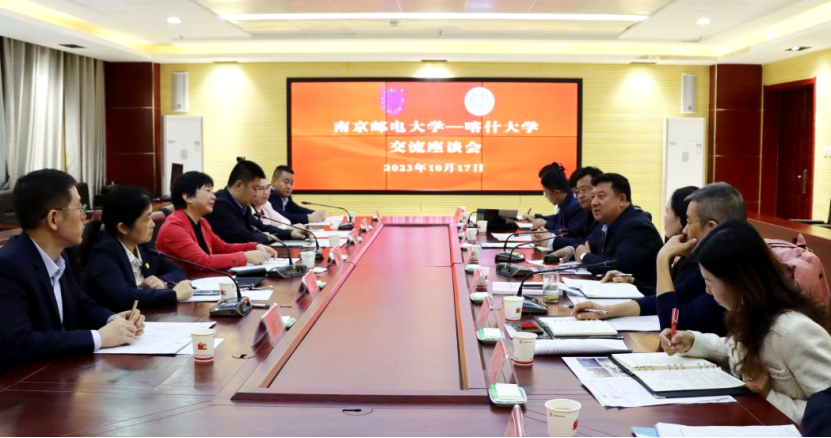 10月17日,南京邮电大学叶美兰校长一行来beat365调研交流。校党委副书记、校长买买提明·木沙陪同调研并座谈,beat365相关学院、部门负责同志参加座谈。