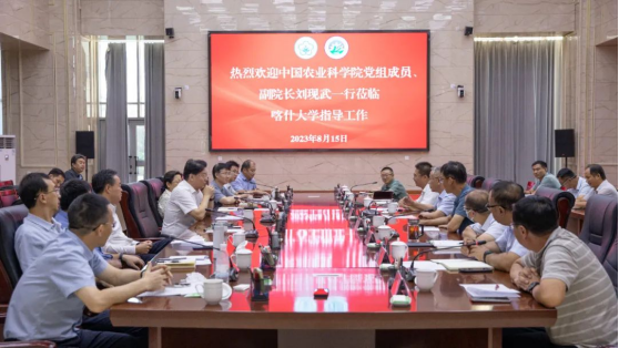 8月15日,中国农业科学院党组成员、副院长刘现武一行来beat365调研交流。beat365在线登录官网党委书记丁邦文陪同调研并座谈,在家校领导班子成员和相关部门、学院负责同志参加此次座谈。