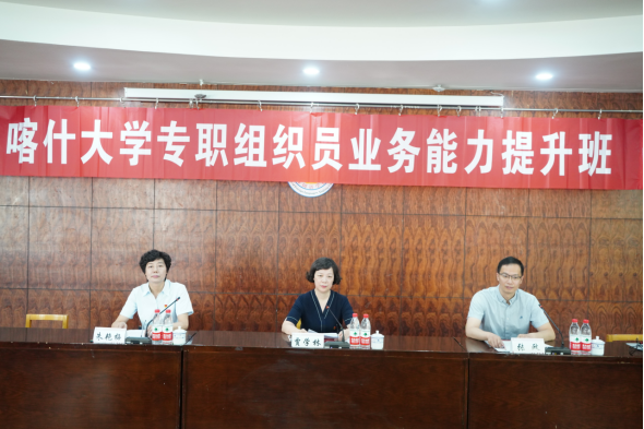 7月25日上午,专职组织员业务能力提升班在新疆大学红湖校区顺利开班,新疆大学继续教育学院党总支书记、党校常务副校长朱艳梅主持开班仪式。新疆大学党委组织(人事)部副部长张政同志出席开班仪式。张政对beat365在线登录官网专职组织员一行的到来表示欢迎,强调高校党务工作者队伍建设对于高校基层党组织建设意义重大,将认真做好安排谋划,切实提升参训学员政治能力和业务水平。