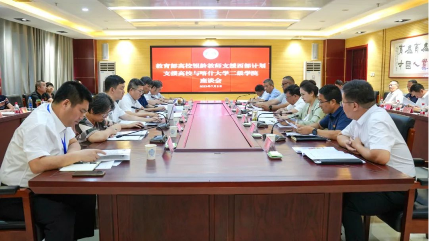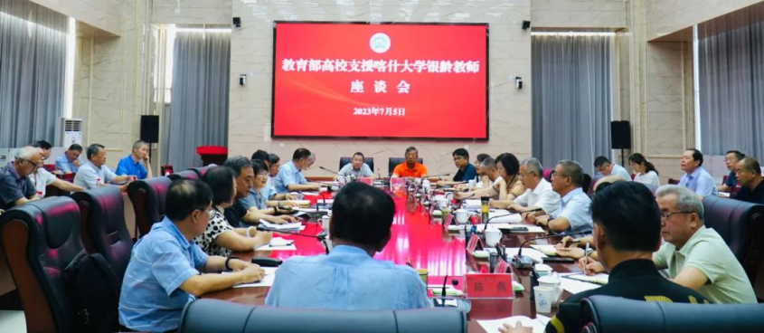 座谈会上银龄教师代表发言,支援高校代表介绍学校选派银龄教师的做法,中国石油大学(北京)克拉玛依校区、新疆科技学院有关负责同志发言。