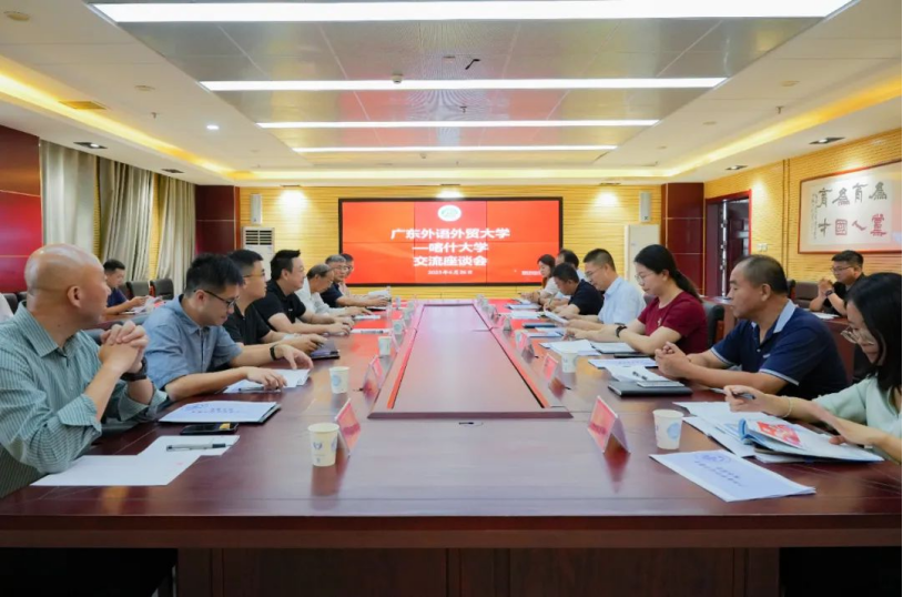 6月26日,广东外语外贸大学党委副书记唐锐一行来beat365调研交流,校党委常委、副校长罗浩波陪同调研并座谈,beat365相关部门、学院代表参加此次座谈。