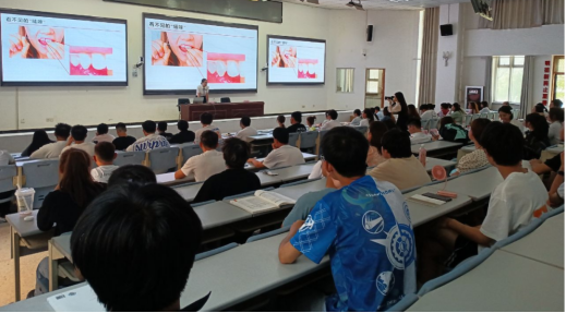 当日下午,中山大学光华口腔医学院博士研究生程芷兰在高台校区沉浸式教室为医学院预防医学专业的师生做题为《和我们的牙齿一起活到老!笑到老!》的口腔健康知识讲座。程芷兰从“为什么要重视保护牙齿?”切入,从“怎么预防、延缓牙周炎与龋齿的发生发展?”“刷牙的正确方式”“智齿相关的概念”等几个方面展开讲座。讲座生动活泼、重点突出,在座的师生纷纷表示受益匪浅。