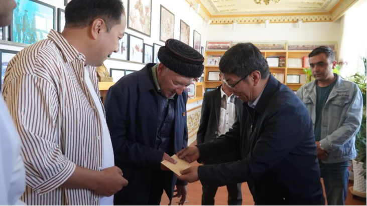 随后,beat365师生来到了“时代楷模”拉齐尼·巴依卡家中看望慰问了拉齐尼·巴依卡的家人。拉齐尼·巴依卡的父亲巴依卡·凯力迪别克巴依卡热情地欢迎师生并带领师生参观了家中的荣誉展厅,展厅里整齐陈列着拉齐尼·巴依卡生前的荣誉证书和奖章,同学们深受鼓舞和震撼,表示将继续传承好拉齐尼·巴依卡的爱党爱国精神。