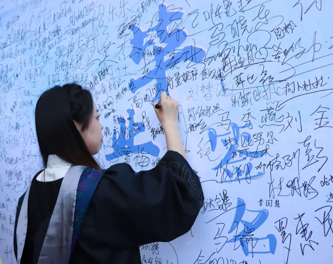毕业生签名墙上留下自己的名字