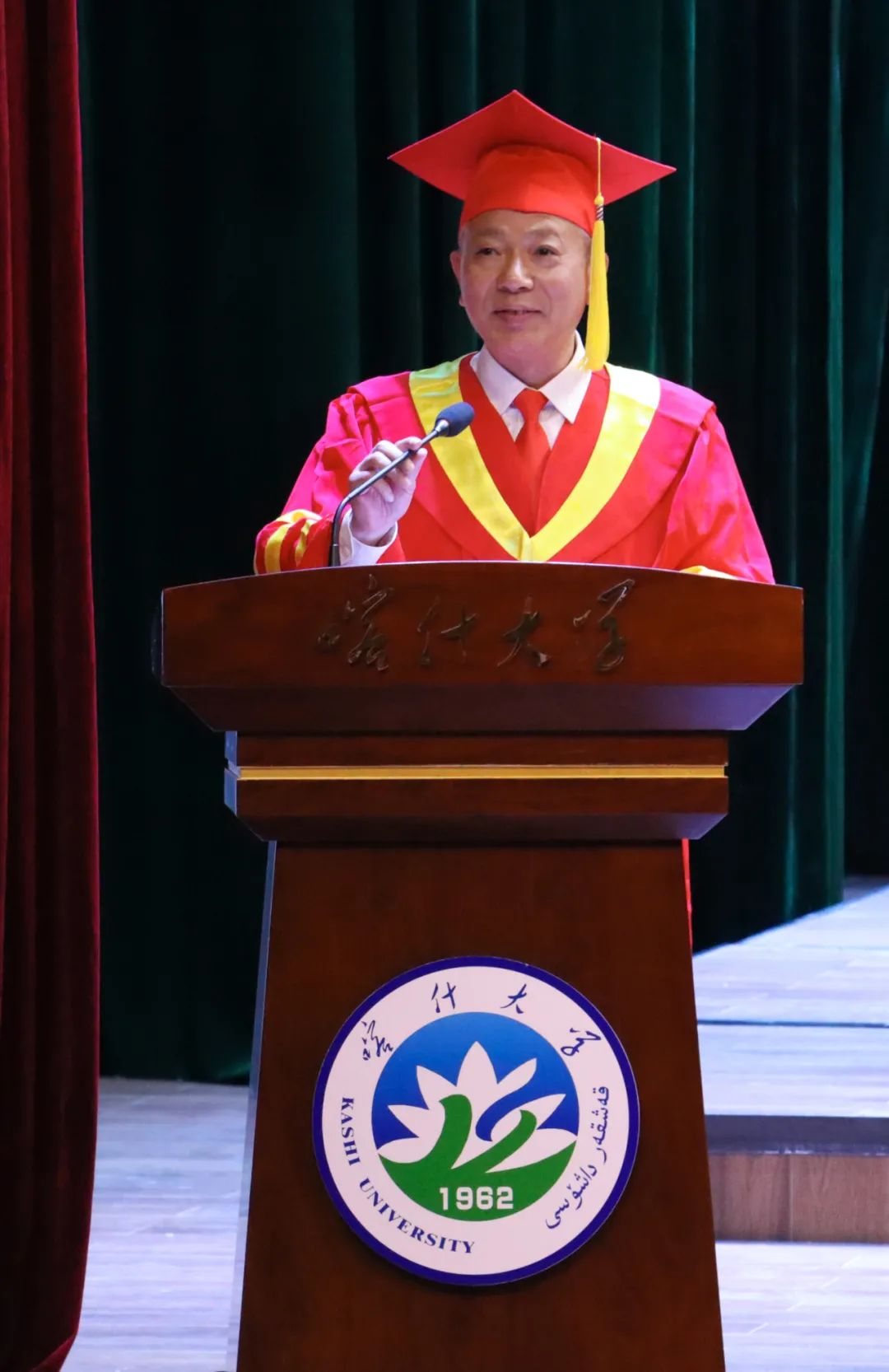学校领导丁邦文、邓勇、赵斌、杨清华、罗浩波、郭绍文、冯冠军、丛培兵、曹红琴,各学院、各部门主要领导出席,校党委副书记、校长买买提明·木沙主持仪式。