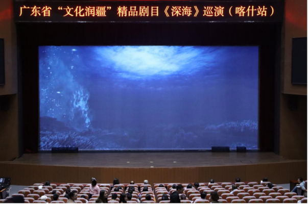 《深海》是广东省话剧院精心打造的大型原创话剧。在广东省文化和旅游厅、广东援疆前方指挥部与喀什地委宣传部共同推动下,以优质的精品剧目丰富观众的精神文化生活,推动文化润疆工作落实落细。
